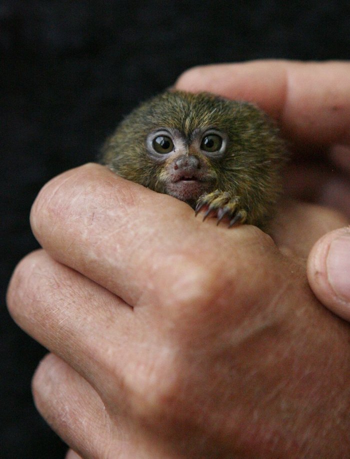 Карликовая игрунка или мармозетка это уникальный и самый маленький представитель семейства игрунковых. Вес таких игрунок едва достигает 200 грамм, а детеныши рождающие у них просто микроскопические. Родина карликовых игрунок это Южная Америка, но благодаря хорошей адаптации в условиях неволи и высокому уровню рождаемости их часто можно встретить в лучших питомниках Европы, а теперь и в России.