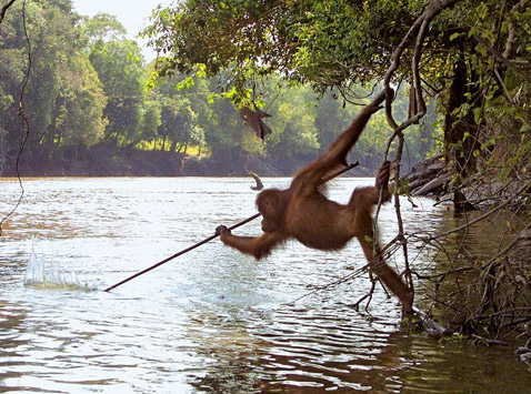 Человекообразные обезьяны (орангутаны, горилла и шимпанзе) — наши кровные родственники. Еще каких-то лет 60 назад их кровь не умели отличать от человеческой. Человекообразные обезьяны, бесспорно, считаются самыми умными обезьянами на нашей планете. Объём мозга у них достигает 400-500 см3. Они легко дрессируются, их можно многому научить. Так что, по лестнице эволюции эти обезьяны стоят сразу после нас. Орангутаны, правда, из этих 3 обезьян, менее всего близки нам, так как первые уклонились от дальнейшего развития.
